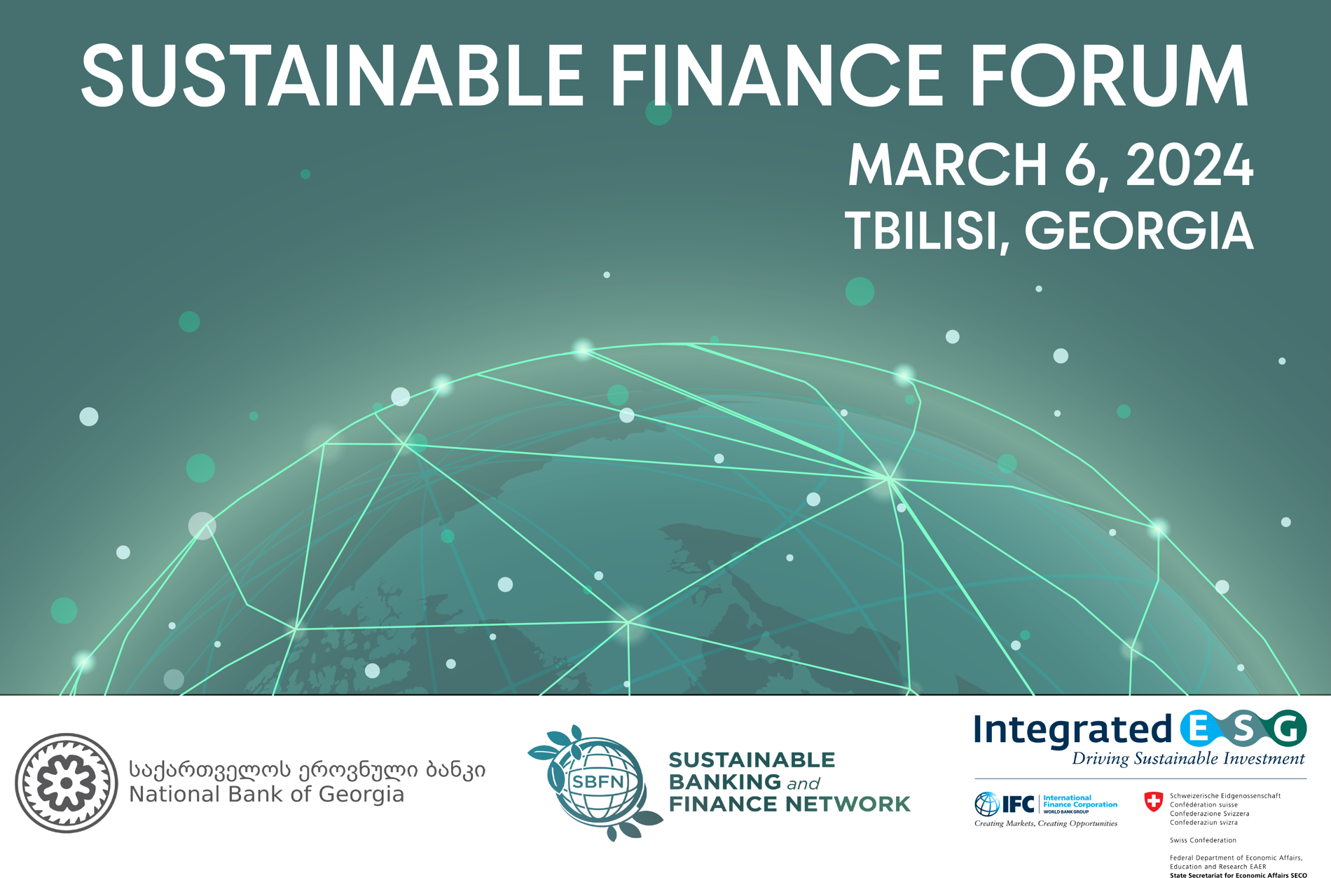 The National Bank of Georgia, Sustainable Banking and Finance Network, and International Finance Corporation, a member of the World Bank Group, in partnership with the Swiss State Secretariat for Economic Affairs (SECO), is hosting a Sustainable Finance Forum and SBFN Working Group’s meetings on March 6, 2024, in Tbilisi, Georgia.