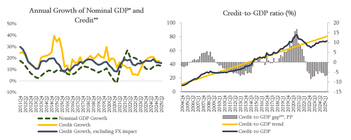 *** Credit-to-GDP gap is the deviation of Credit-to-GDP ratio from its long-run trend. The trend is estimated using HP filter in line with the Basel recommendations