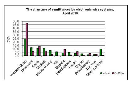 In the reporting month, the structure of remittances by electronic wire systems is shown on the graph below.