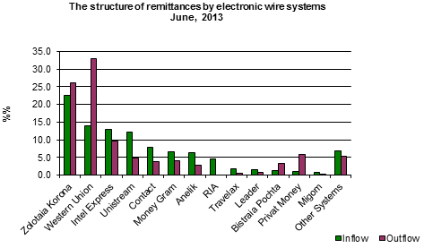 93.1 percent of total money transfers from abroad fall on those 11 big donor countries, from which the volume of such transfers exceeded 1 million USD in June. In June 2012 the share of these 11 countries constituted 93.6 percent of the total volume of money transfers.