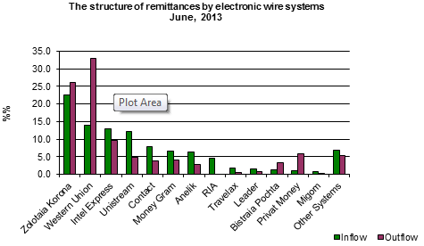 In the reference month, the structure of remittances by electronic wire systems is shown on the graph below.