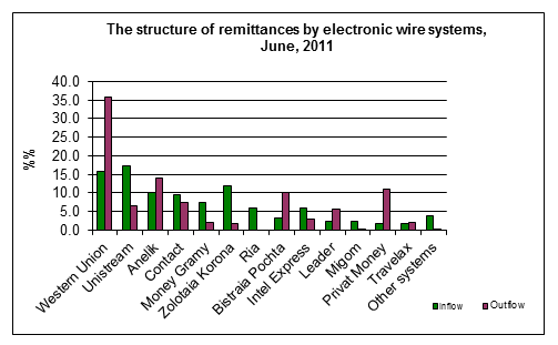 In the reporting month, the structure of remittances by electronic wire systems is shown on the graph below.