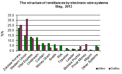 In the reference month, the structure of remittances by electronic wire systems is shown on the graph below.