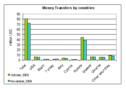 In November 2009 6.1 million USD were transferred from Georgia, while in October 2009 this figure amounted to 6.5 million USD.