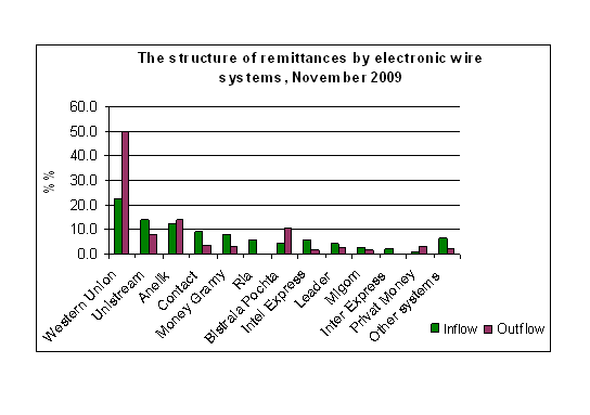In the reporting month, the structure of remittances by electronic wire systems is shown on the graph below.